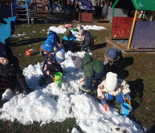 Прогулки на свежем воздухе прекрасное время для развлечений, но и время для оздоровления организма. Малыши активно проявляют интерес ко всему, что происходит вокруг. Первый снег: самое долгожданное и радостное событие. Ведь можно играть и просто радоваться. Сколько радости на личиках у детей, сколько эмоций.Блестящие глаза, румяные щёчки и отличное настроение – результат прогулки.