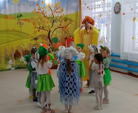 В 1 средней группе педагог-психолог Заремба Анна Леонидовна подготовила и провела осеннюю сказку «Осень в теремке», в которой принимал активное участие ребенок с ограниченными возможностями здоровья. Зрители с интересом наблюдали за сказочным сюжетом, а маленькие герои были настоящими артистами, весело танцевали, старались передать образ своего персонажа. В награду Осень подарила ребятам вкусные яблоки, а зрители - громкие аплодисменты!