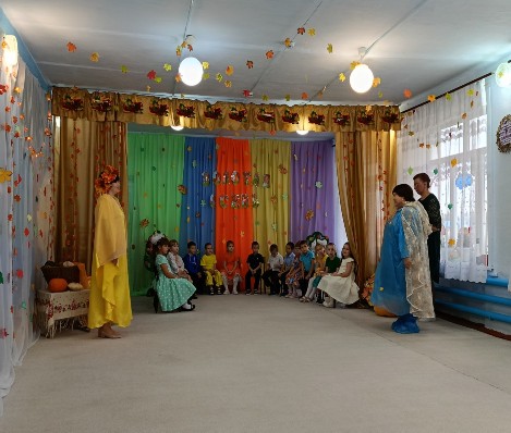 Традиционно, в октябре, в нашем детском саду проходят осенние праздники. У детей подготовительной группы «Непоседы» прошёл осенний утренник -«Осенняя Непогодушка» На дворе пасмурно и прохладно, не хватает солнечного тепла, а у нас в музыкальном зале царила тёплая, доброжелательная атмосфера. В гости к ребятам пришла злая Тучка, с которой они сумели подружиться, а также волшебством одарил Лесовичок, а Непогодушка стала такой добродушной и весёлой.И сама Осень-красавица заглянула к нам на праздник, принесла гостинцы: яблоки. На празднике дети пели песни, исполняли танцы, играли в весёлые игры, отгадывали осенние загадки, рассказывали стихи. А самым ярким и запоминающимся эпизодом стал сюрпризный момент – корзинка с яблоками от