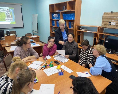 19 ноября состоялось муниципальное методическое объединение учителей-логопедов и учителей-дефектологов Кыштовского района по теме «Проектирование образовательного процесса в соответствии с требованиями ФГОС общего образования, ФООП и ФАОП: формирование и развитие функциональной грамотности участников образовательного процесса». В рамках проведения данного мероприятия педагоги заслушали выступления коллег по самым актуальным вопросам, касающимся обучения и воспитания детей в том числе с ОВЗ, разрабатывали конспект занятия по заданной теме, обсуждали пути решения и проблемы по работе с родителями, развитию функциональной грамотности. На практике познакомились и вспомнили дидактические игры по развитию логического мышления, предупреждению и коррекции дисграфии и дислексии, упражнения на формирование словообразования и словоизмененияу детей с общим недоразвитием речи, рассмотрели применение проектного метода работы с детьми с ОВЗ.