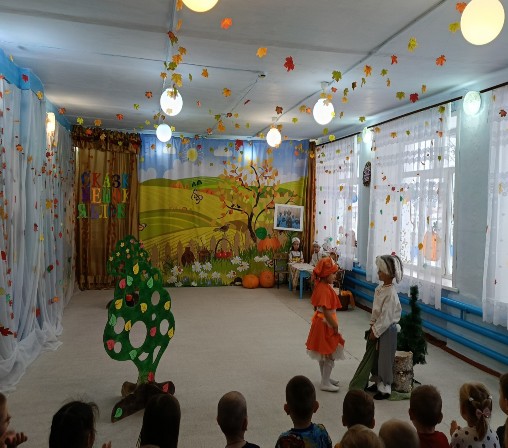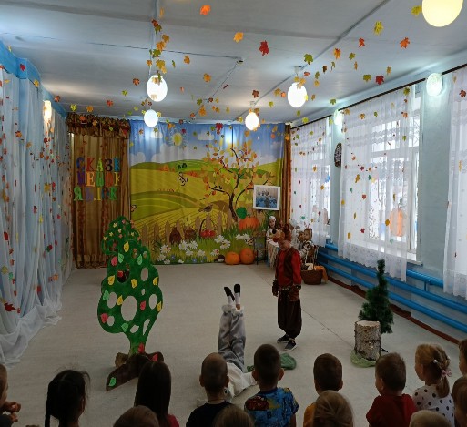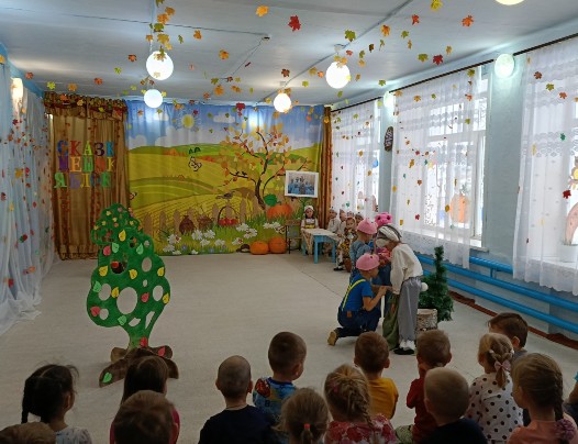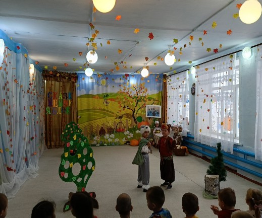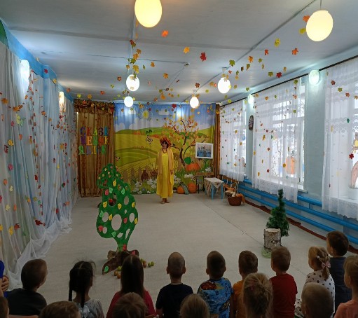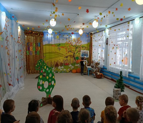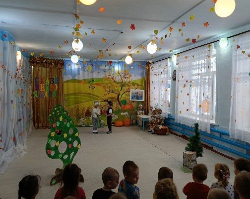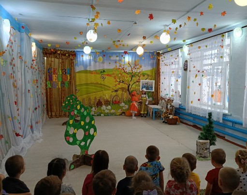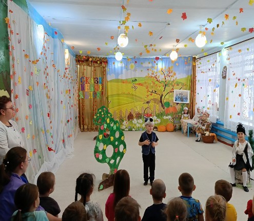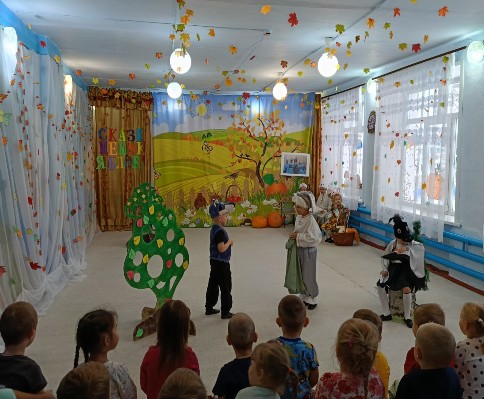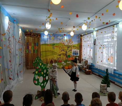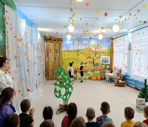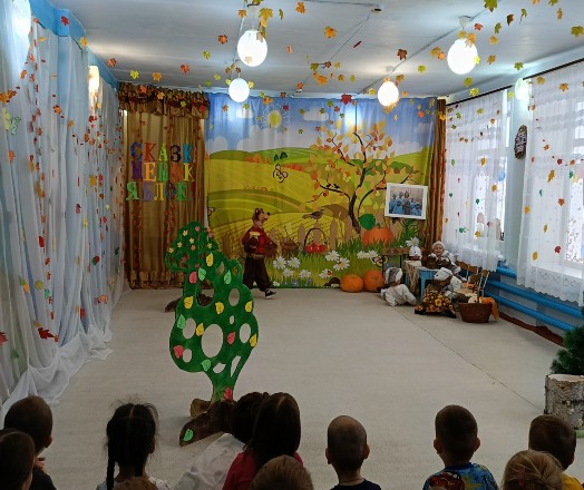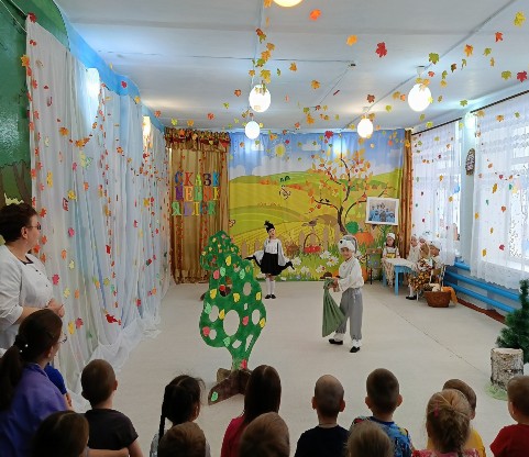 В детском саду «Ласточка» продолжает свою деятельность театральная студия «В гостях у сказки». В этот раз по мотивам сказки Г.В.Сутеева «Мешок яблок» состоялась премьера театрализованного представления с участием детей старшей группы для родителей и всех детей детского сада. Эта осенняя сказка была гармонично включена в празднование праздника Осени. Перед спектаклем ребята готовились основательно: множество репетиций, отработка актерского мастерства, подготовка афиши, распространение пригласительных билетов, разучивание песен, танцев и др. Активно подключались и родители (пошив костюмов, изготовление декораций, украшение зала, помощь в разучивании ролей).