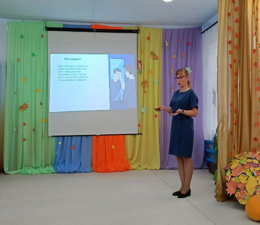 Каждый педагог повышает свою квалификацию, принимая участие в методических объединениях. Так в рамках проведения методического объединения на уровне нашего детского сада педагоги проанализировали «Программу просвещения родителей (законных представителей) детей дошкольного возраста, посещающих дошкольные образовательные организации», рекомендованную Министерством Просвещения Российской Федерации. Мария Васильевна Меркулова выступила перед коллегами, осветив проблему агрессивности детей в дошкольном возрасте, сформулировала проблемы, причины и представила пути решения.